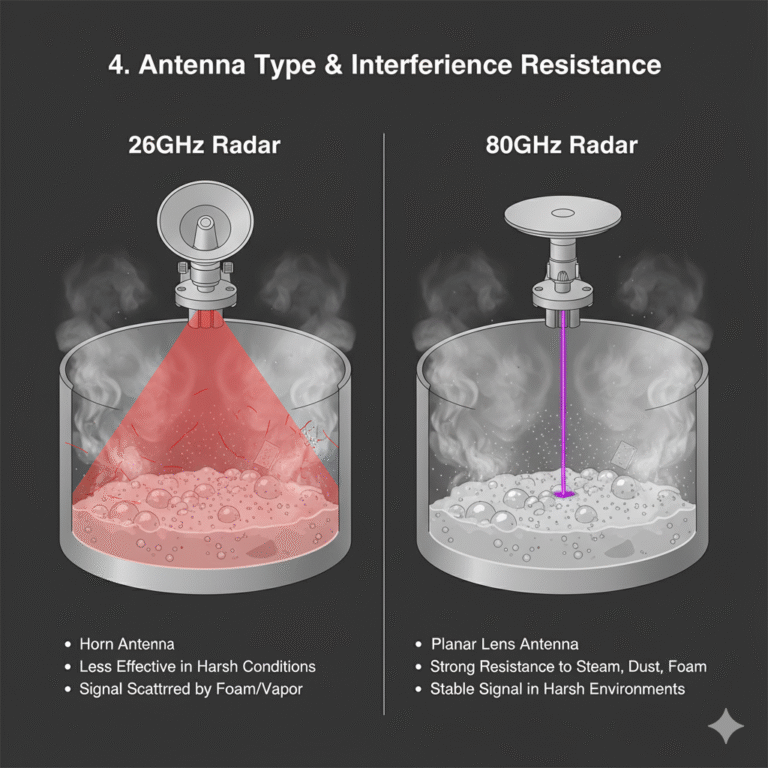 Among various radar frequencies—6GHz, 26GHz, 80GHz, and even 120GHz—the 26GHz and 80GHz models are the most commonly compared. Although both belong to the microwave radar family, their operating principles and performance differ significantly due to frequency, wavelength, beam angle, and antenna design.