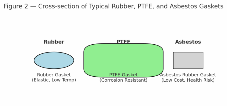 Asbestos Rubber | ≤200 °C | ≤2.0 MPa | Water, steam, inert gases | Low cost, easy use | Health risk, banned in many regions |