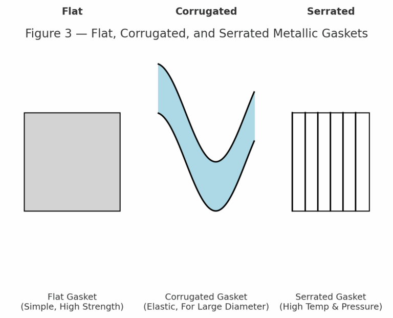 Flat Metal | Up to 500 °C | High pressure | Oil, gas, steam | Strong, durable | Poor elasticity, needs high preload |