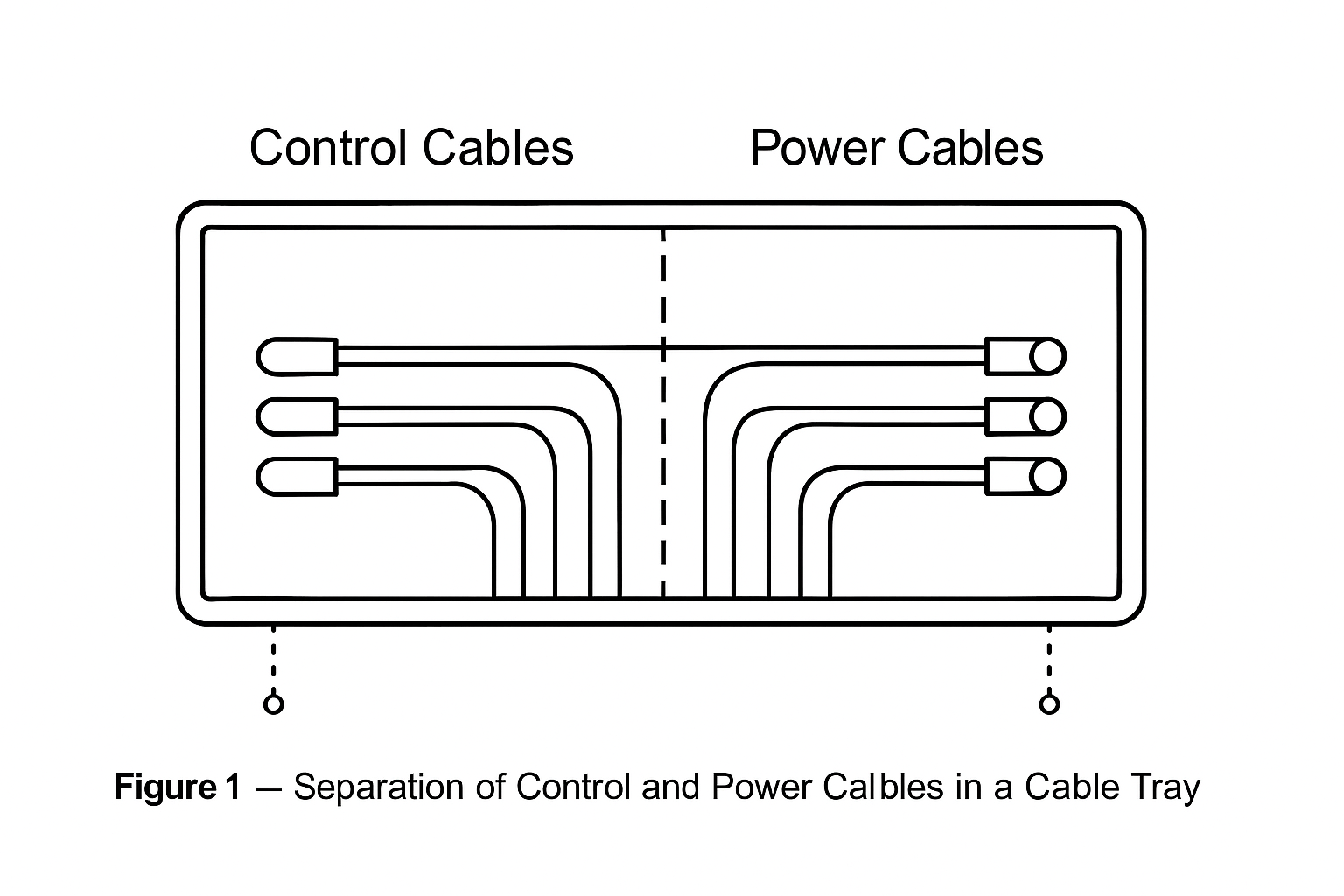 Place control and power cables in separate trays or layers to prevent crosstalk.