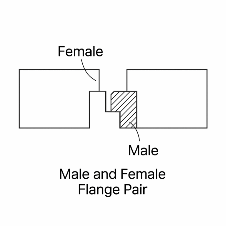 • Appearance: Pair of mating flanges — one with a raised “tongue,” the other with a recessed “groove.”