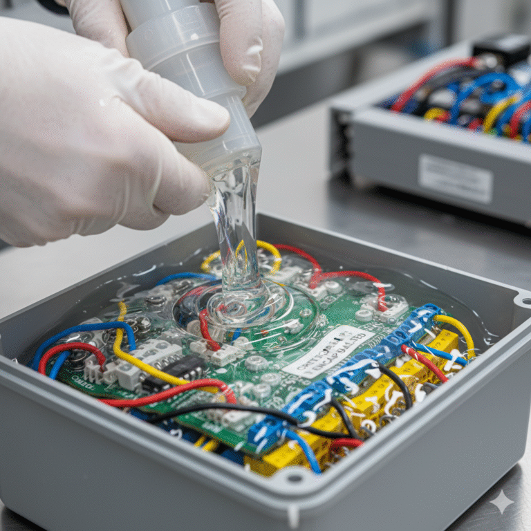 Requirements: Ensure correct wiring before encapsulation and label each point for identification. Use flexible, flame-resistant, low-stress silicone gel to guarantee long-term vibration resistance without cracking. Ensure the encapsulation is filled properly, with no air bubbles.