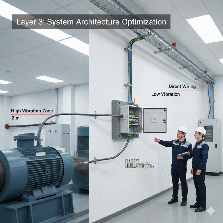 Solution: Place intermediate junction boxes in areas with low vibration, but close to vibration sources, to separate permanent connections in high-vibration areas from maintainable connections in low-vibration zones.