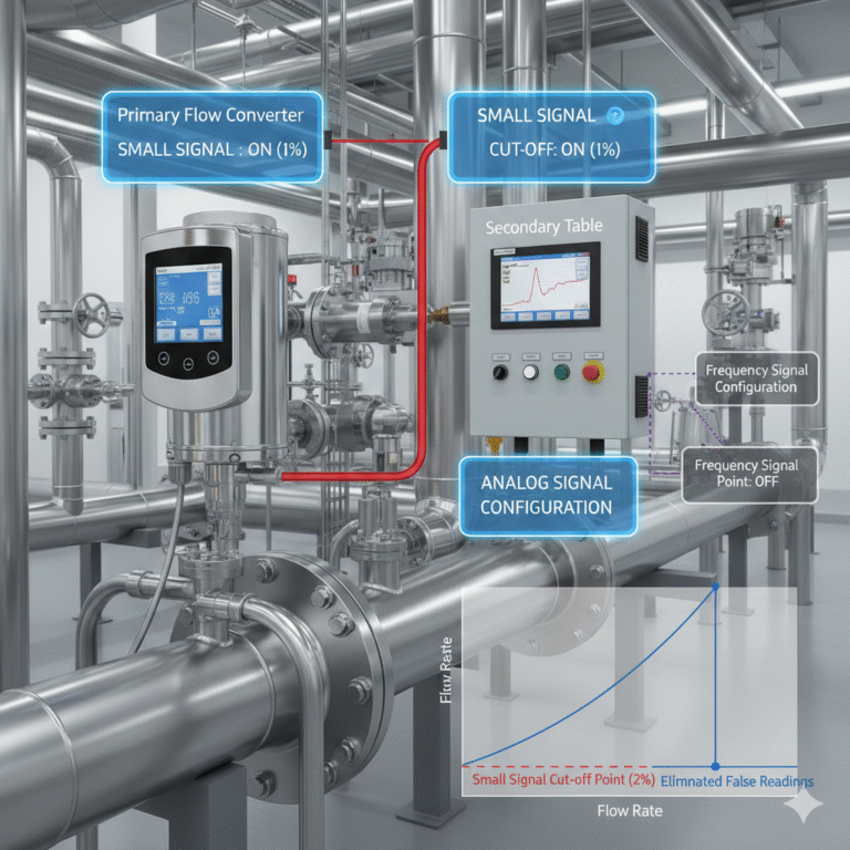 Small signal cut-off is implemented to eliminate the false readings caused by zero drift. It is essential to ensure that the flow measurement system does not display readings in the absence of actual flow. When correctly configured, this feature improves data accuracy and prevents erroneous alarms. However, incorrect configuration can lead to new problems, such as unnecessary signal cuts or missed readings.
