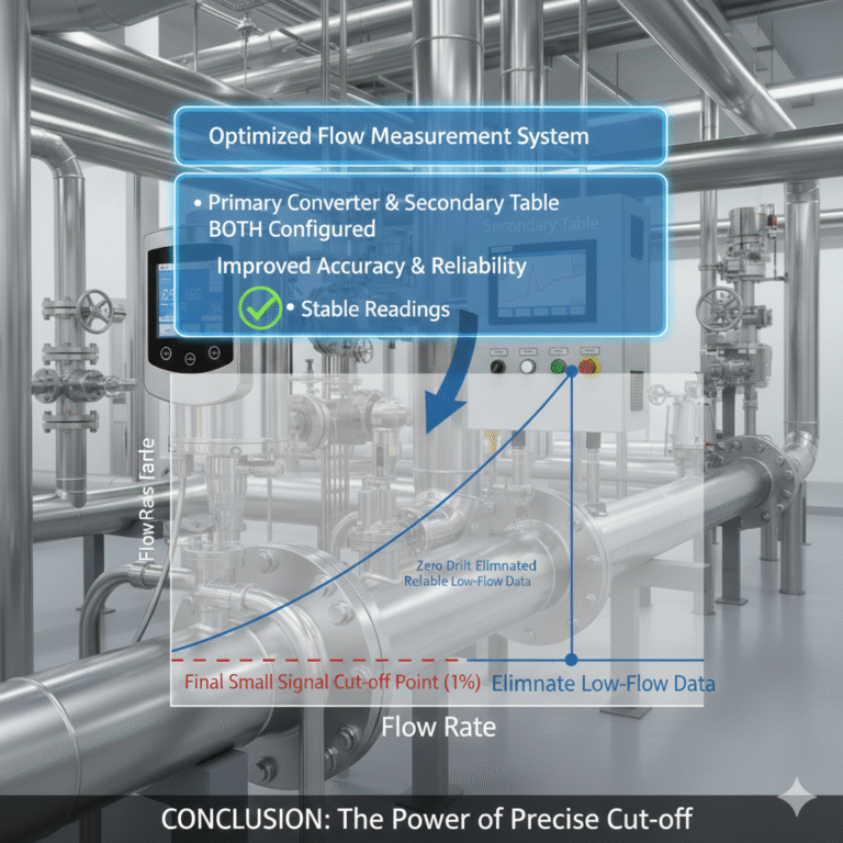 A common issue in flow measurement systems is the occurrence of small readings even when no flow is present. This phenomenon, caused by zero drift in the meter, can lead to inaccurate data, false alarms, and interference with control systems. The small signal cut-off feature is designed to address this issue by eliminating these false readings. However, if misapplied, it can introduce new problems. This article explains how to properly apply the small signal cut-off functionality in flow converters and secondary tables.