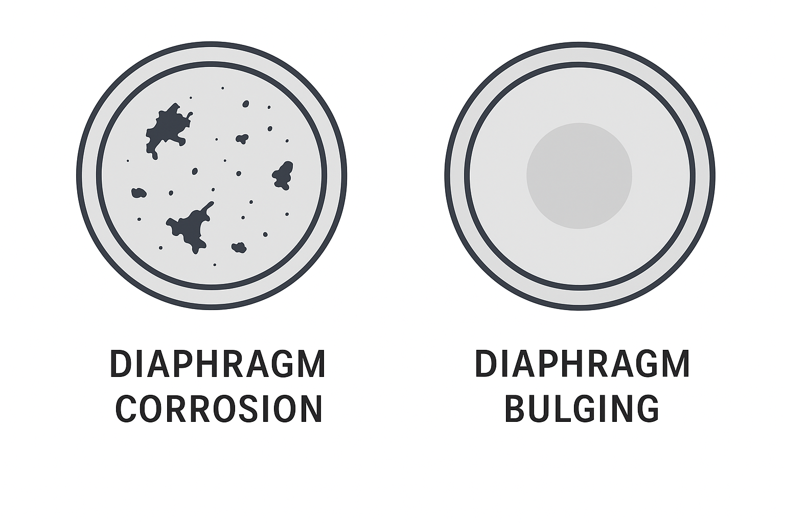 Severe corrosion on the liquid side diaphragm
