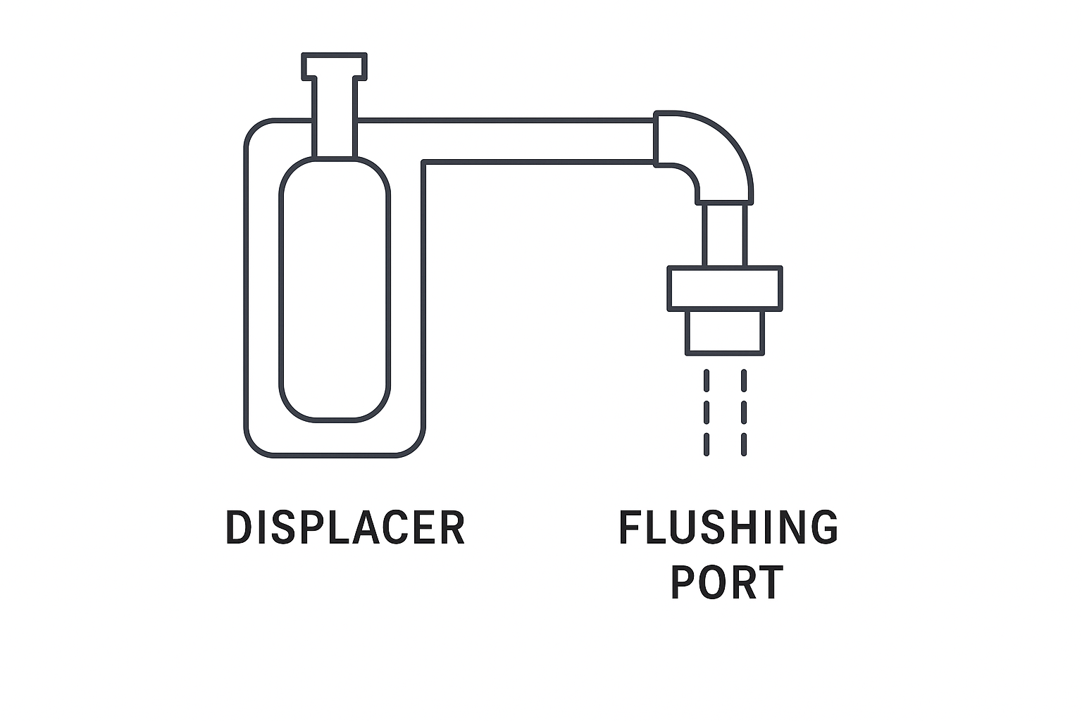 Flushing port repositioned to the end of the displacer head, aligned with the torque tube.