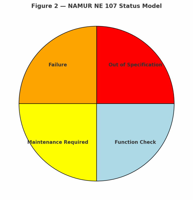 NAMUR (Normenarbeitsgemeinschaft für Mess- und Regeltechnik in der Chemischen Industrie) is a leading German user association that develops important guidelines for process automation. Among its many recommendations, NE 43 and NE 107 are particularly influential in device diagnostics and health monitoring.