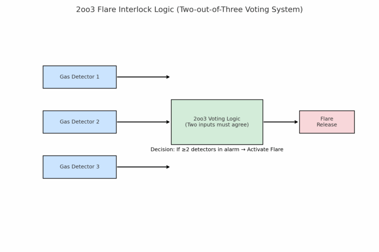 Flare systems should incorporate two-out-of-three (2oo3) voting interlocks to minimize unnecessary releases. This approach ensures reliability while preventing avoidable flaring, reducing both greenhouse gas emissions and visible pollution.
