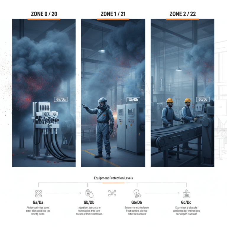Match Equipment: Select equipment where the EPL rating matches the hazard zone, and ensure the gas/dust group and temperature class “cover” or exceed the site’s hazardous materials.