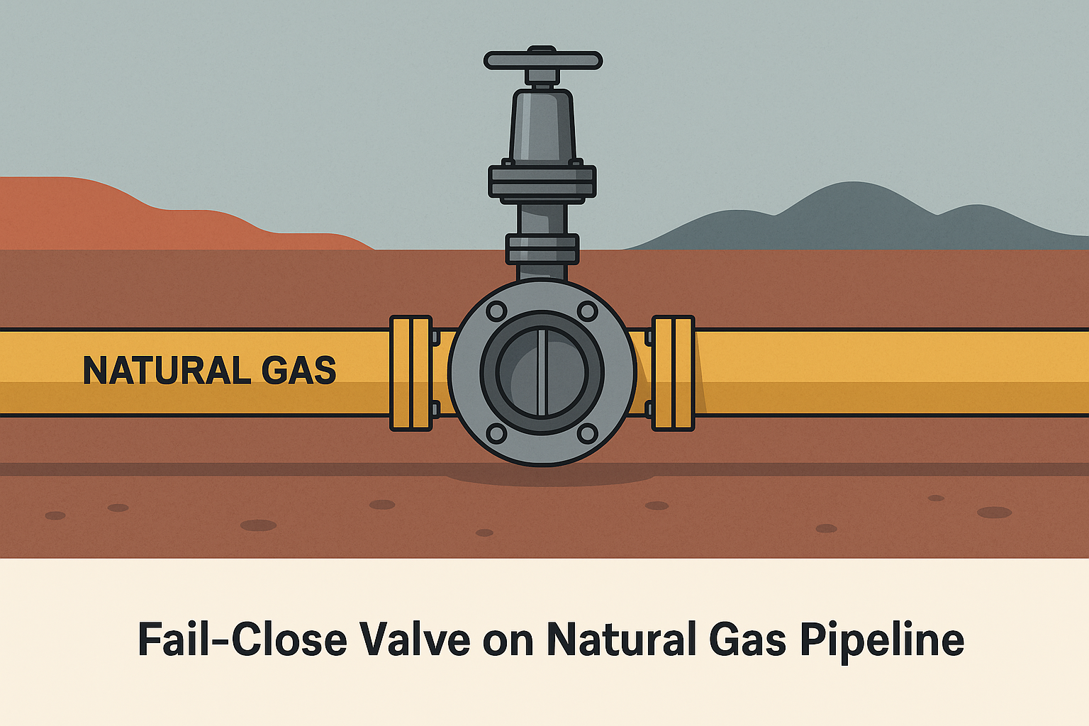 In oil & gas pipelines transporting natural gas or petroleum products, fail-close valves prevent leaks and avoid explosion or fire hazards.