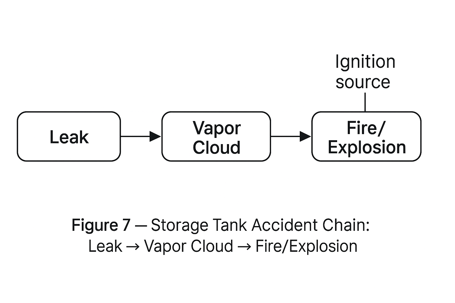 Explosion — Low-flash-point hydrocarbons (e.g., LPG tanks) may detonate from ignition or static discharge (e.g., Nanjing oil tank explosion).
