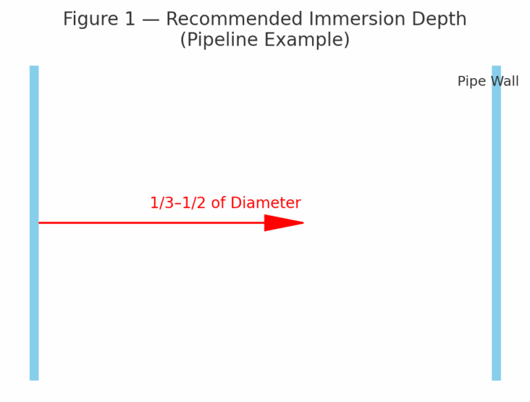 Recommended immersion depth: 1/3 to 1/2 of the pipe diameter.