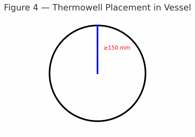 Vessel (general) | ≥150 mm from inner wall | Balance cost and performance |