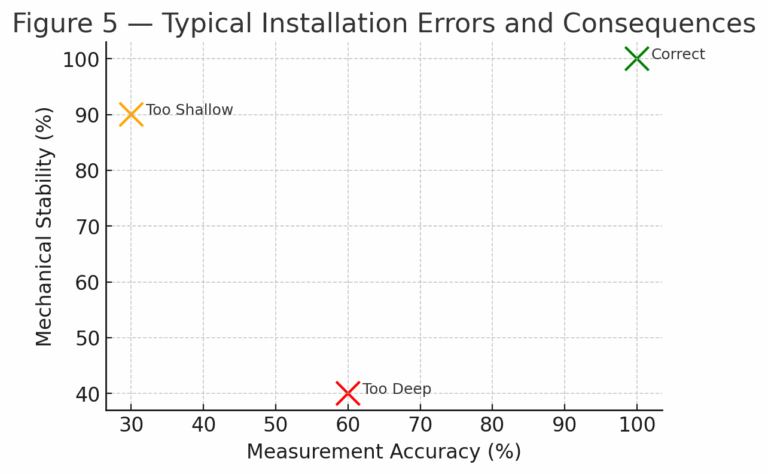 “Shallow insertion saves cost”: Risk of inaccurate readings due to insufficient sensitive segment immersion.