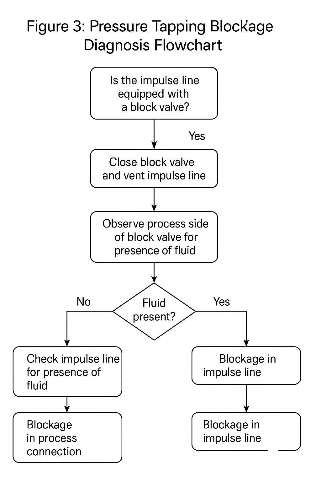 Impulse Line Issues | Blocked or partially blocked impulse lines | Open vent/drain valves and test with air |