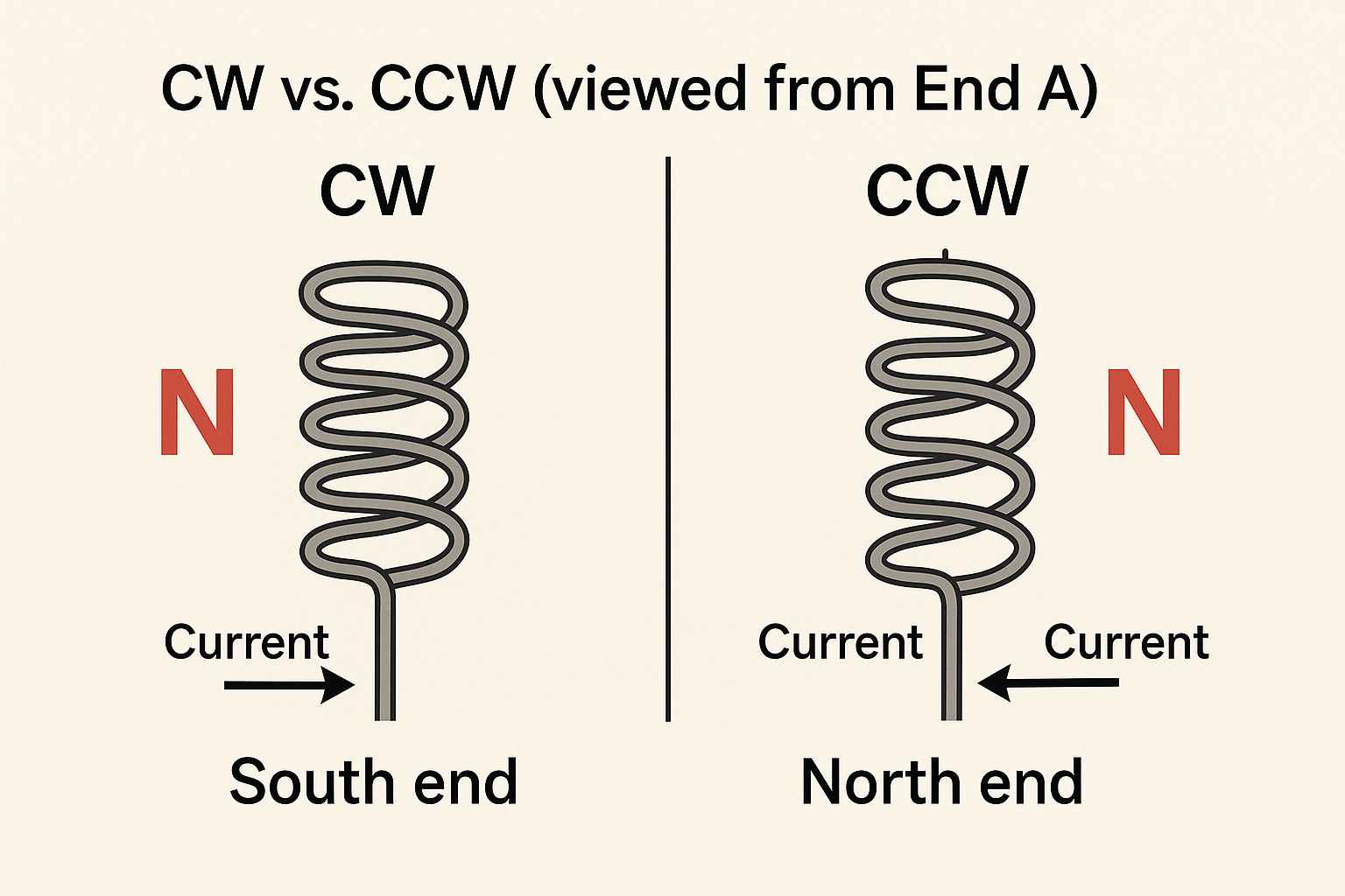 Define the viewpoint: Always state “viewed from end A” when calling a winding CW (clockwise) or CCW (counterclockwise). Without a reference end, CW/CCW is ambiguous.