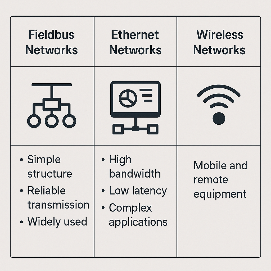 Advantages: High bandwidth, low latency, suitable for complex monitoring and management applications.