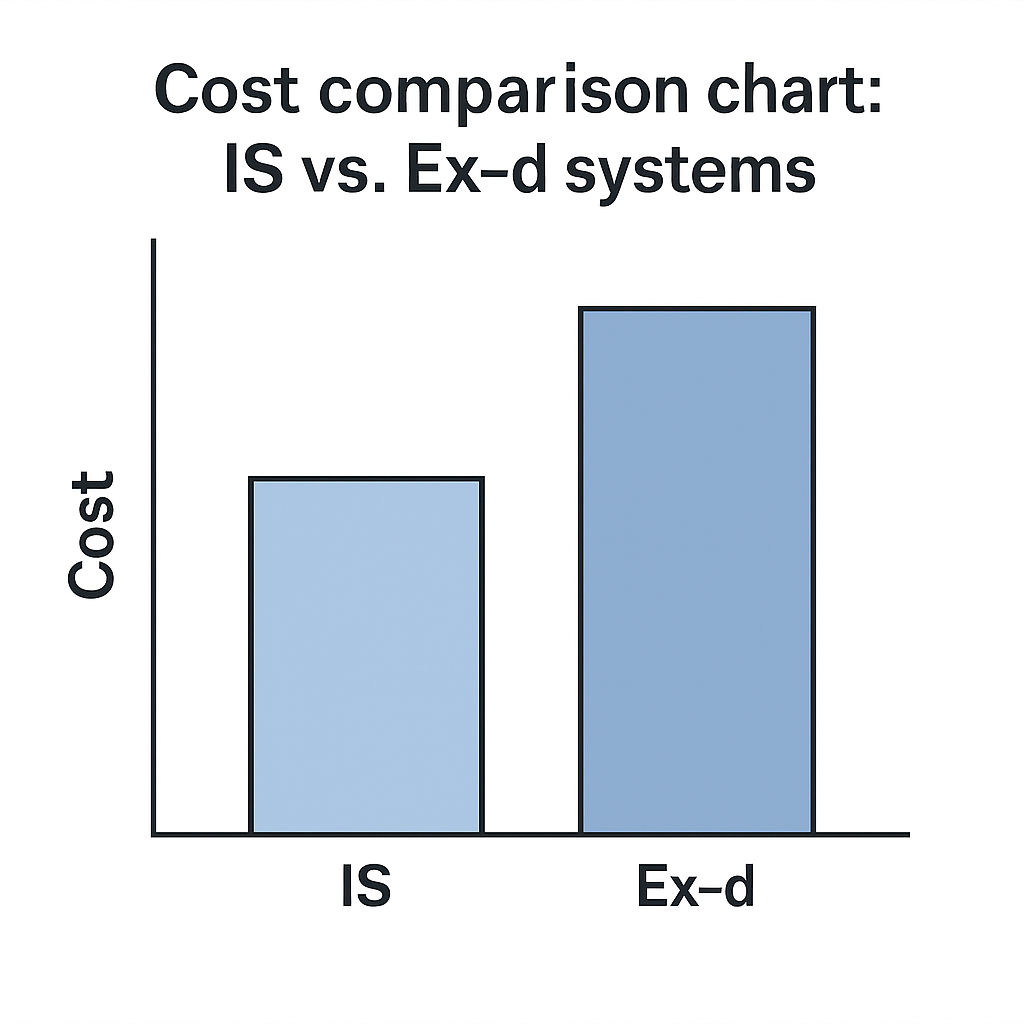 👉 Overall, IS systems are slightly more expensive than Ex-d systems, though in optimized designs the difference can be minimized.