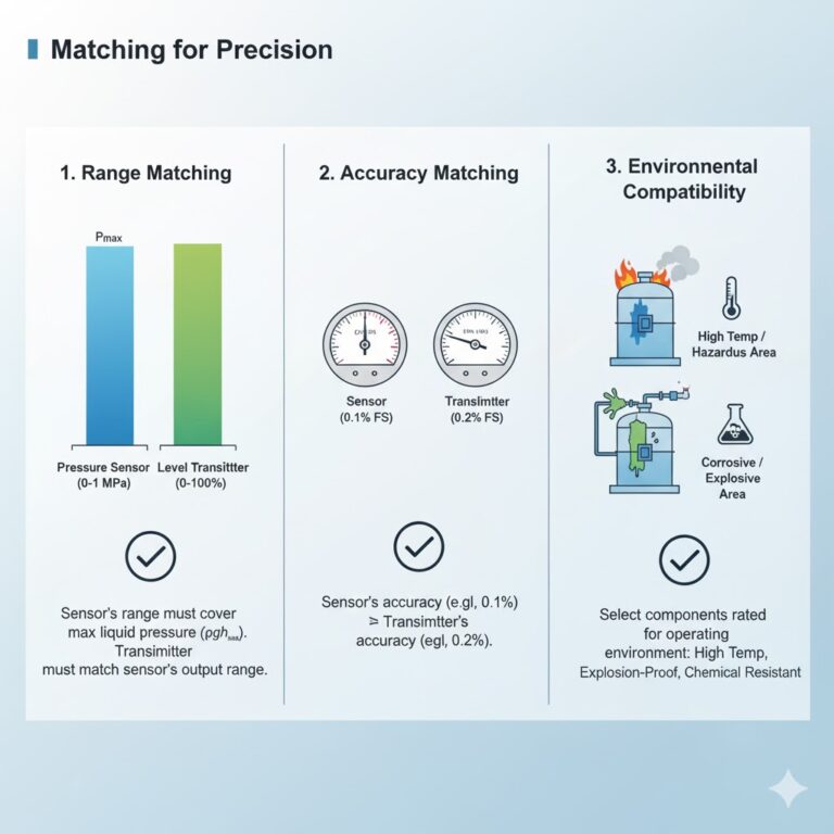 The accuracy of pressure sensor and level transmitter integration depends not just on individual components but on how well their parameters match. Key considerations include: