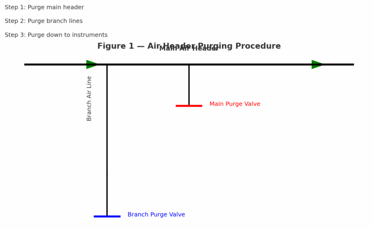 Air Supply Purging – Purge main and branch air headers to remove rust, silica dust, or other contaminants. Perform purging down to filter–regulator units of pneumatic valves and positioners.