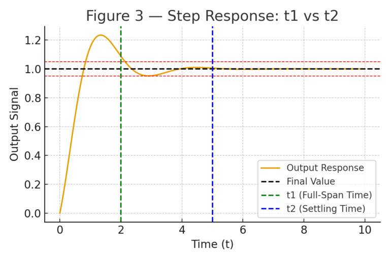 🔎 Key Point: Settling time and full-span response time are not identical; both must be considered in dynamic performance testing.