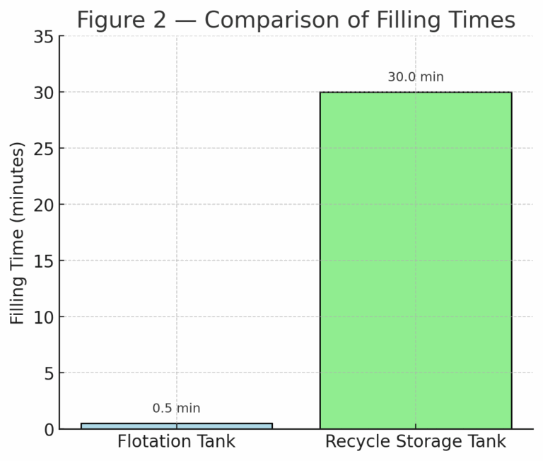 As a result, although the vessel volume looks huge, the actual effective filling time is only about 30 seconds. By contrast, typical recycle storage tanks often have filling times of 30 minutes or more.