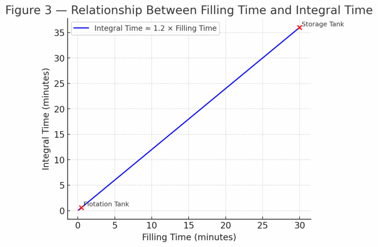 A flotation tank with a diameter of 10 m and a height of 5 m looks massive, and one might assume the level control would require integral times of 10 minutes or more. In practice, this assumption can be misleading because: