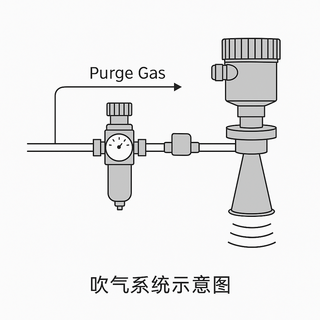 Maintain purge pressure at 0.1–0.3 MPa, with a flow rate sufficient to form a stable air curtain at the antenna opening.
