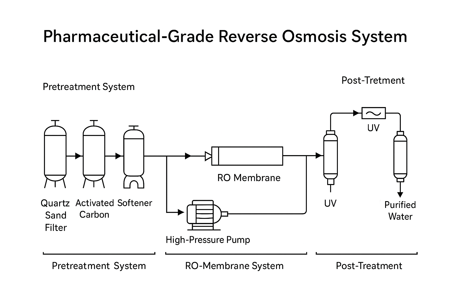Far beyond “pump + membrane.” In pharmaceutical plants, RO is an integrated engineering solution with multiple subsystems: