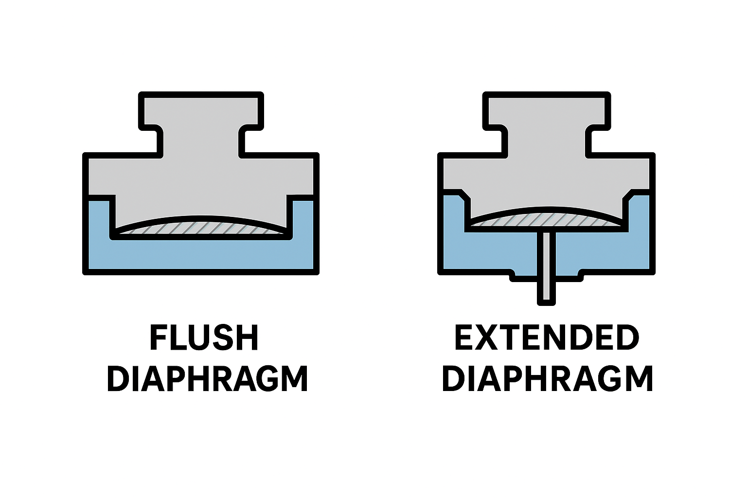 • Flush-type diaphragms (flat diaphragms) are easier to clean and are preferred in viscous or crystallizing media.