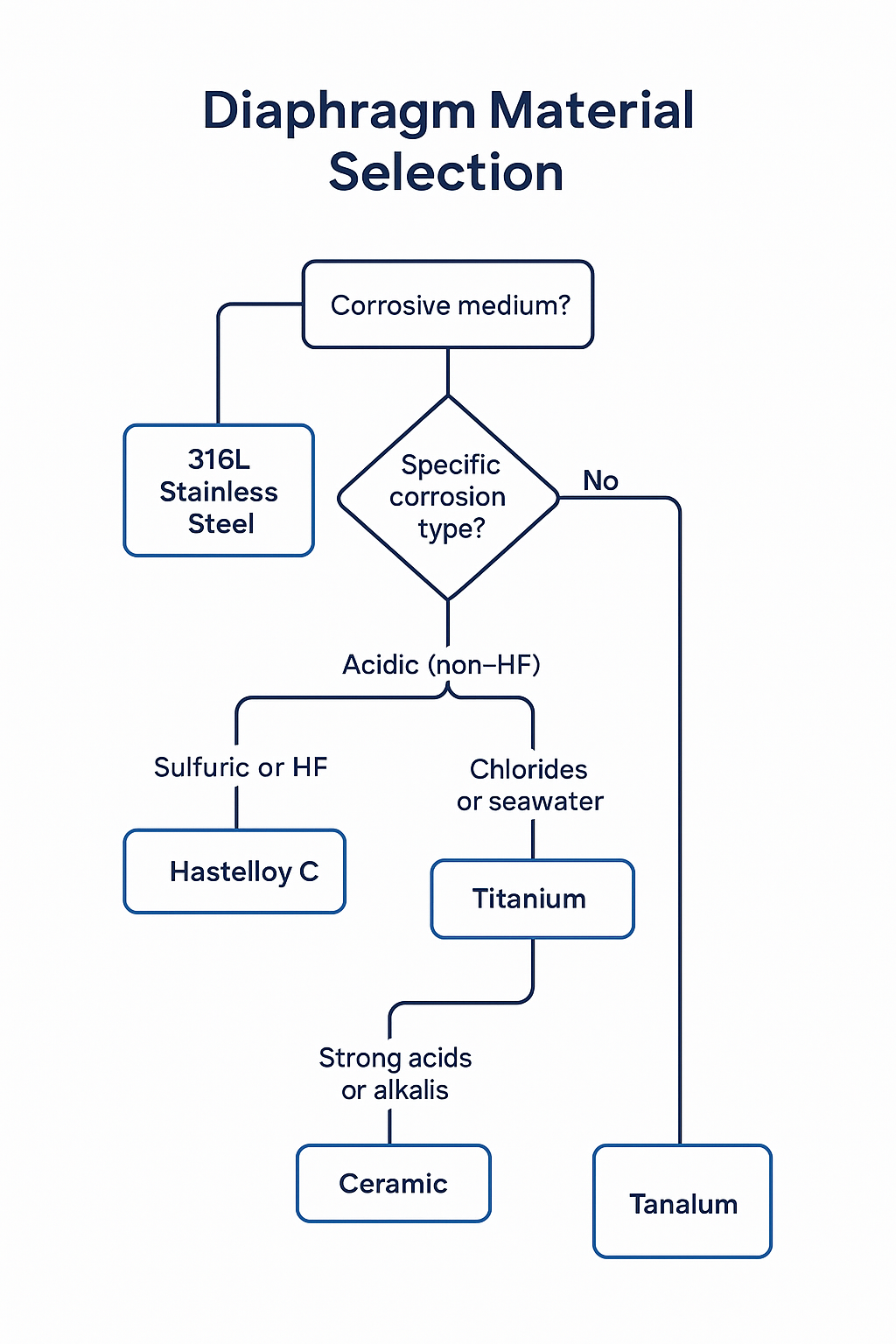 Highly corrosive media require diaphragms made of materials with superior corrosion resistance, such as Hastelloy C, titanium alloys, or tantalum.