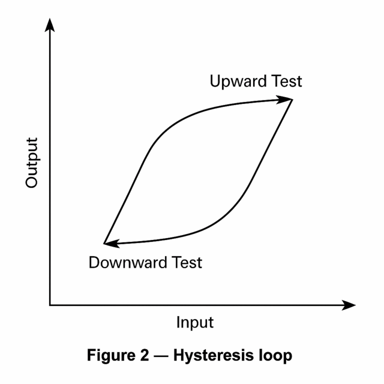 In practice, hysteresis should not exceed the allowable error. It is checked during instrument calibration by performing both upward and downward tests.