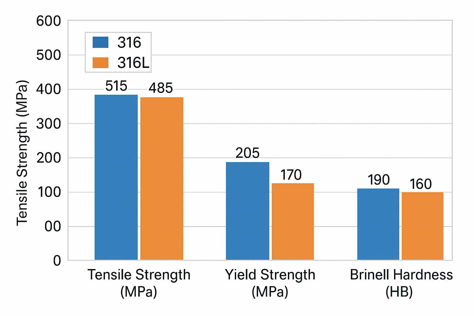 A: No. 316 usually has higher tensile/yield. 316L trades a little strength for welded corrosion reliability. Thickness upsizing can offset strength gaps in design.