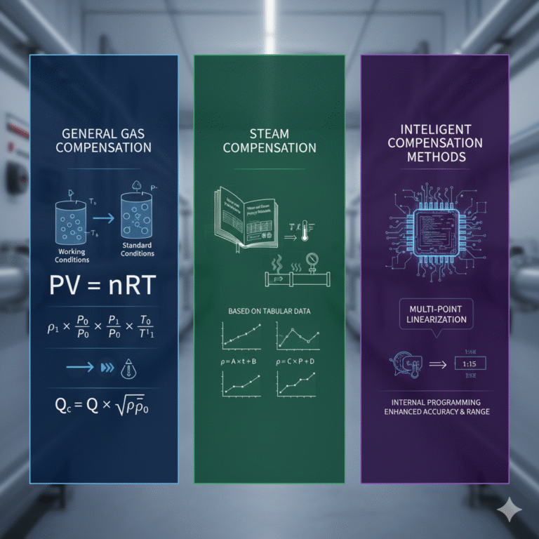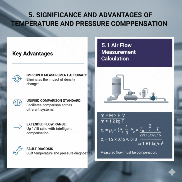 Compensation Reason: The density of gases is significantly influenced by temperature and pressure, requiring compensation to convert volume flow to standard mass flow.