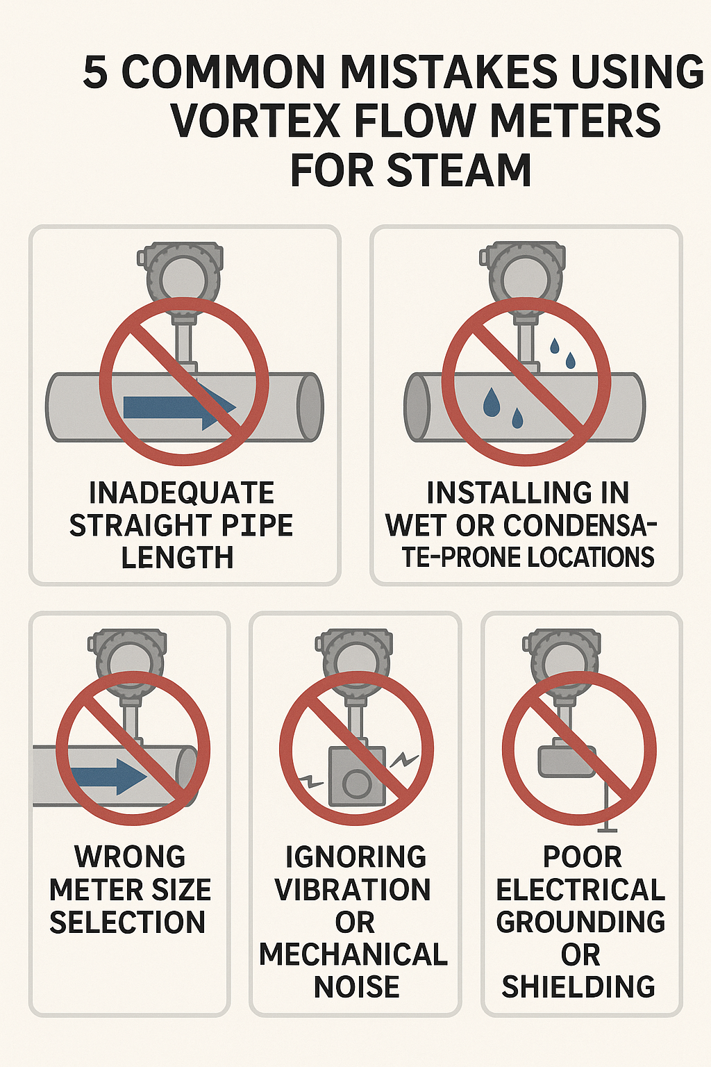 Even the best vortex flow meters can deliver poor results if installation and operating conditions are neglected. By avoiding these five common mistakes, you can ensure reliable, long-term steam flow measurement with minimal maintenance and downtime.