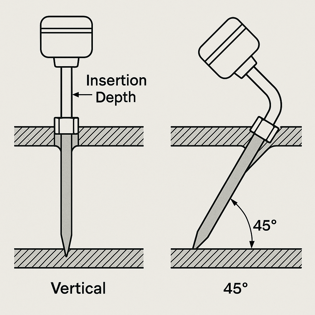 Insert 20–50mm beyond the inner wall of the pipeline or furnace.