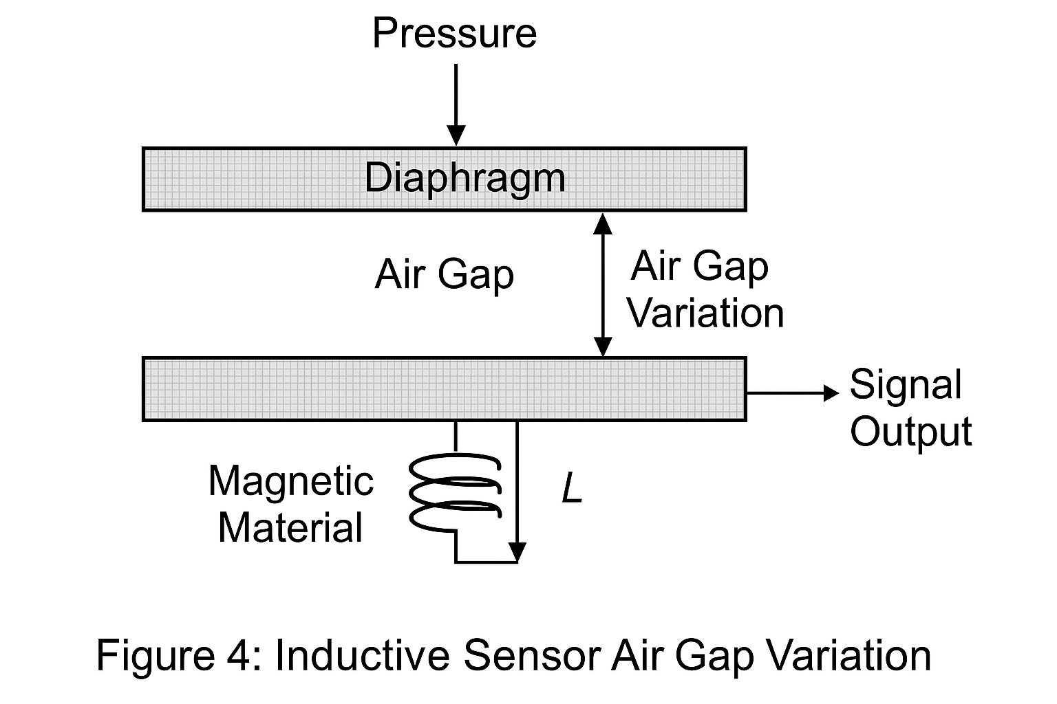 Working Principle: Inductive pressure sensors operate based on the change in inductance due to the movement of a magnetic core or diaphragm under pressure. The displacement changes the air gap in a magnetic circuit, affecting the coil’s inductance, which is then processed into an electrical signal.