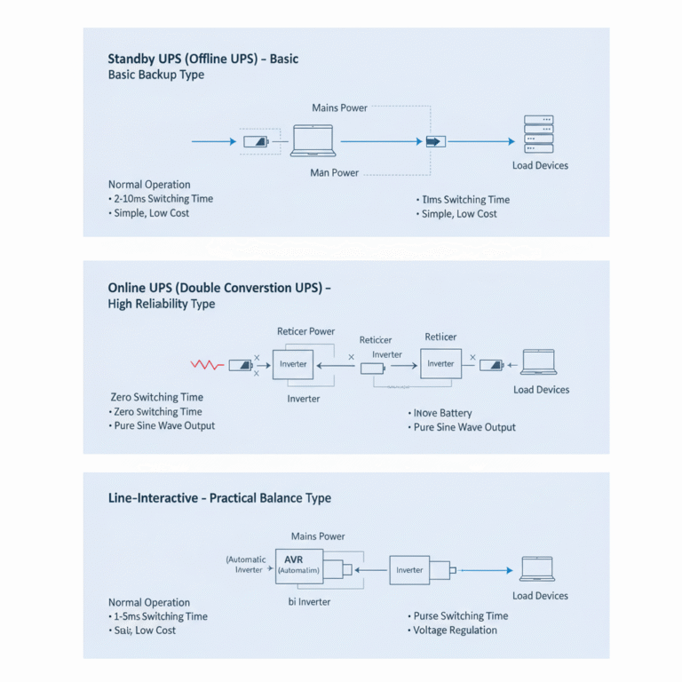 1. Standby UPS (Offline UPS) – Basic Backup Type: