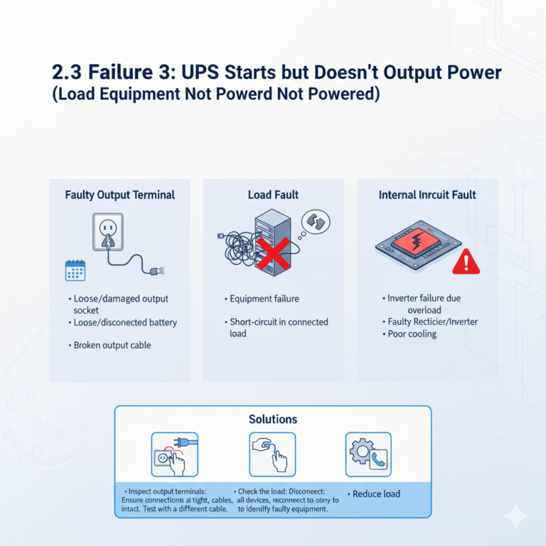 2.3 Failure 3: UPS Starts but Doesn’t Output Power (Load Equipment Not Powered)