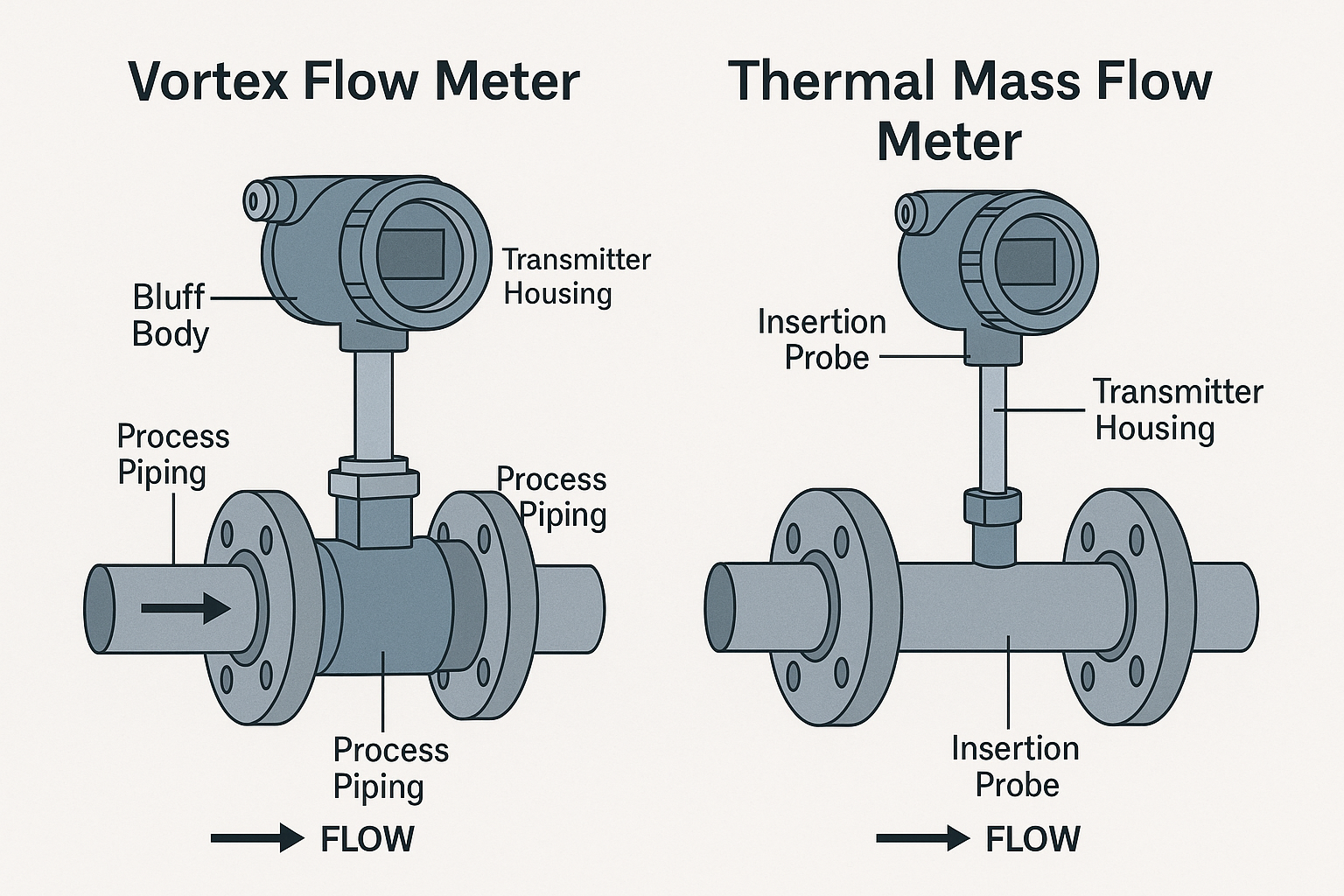 Measuring gas flow in industrial processes is crucial for safety, efficiency, and cost control. Two of the most common technologies are vortex flow meters and thermal mass flow meters. Both have unique strengths, but they operate on very different principles and are suitable for different conditions.