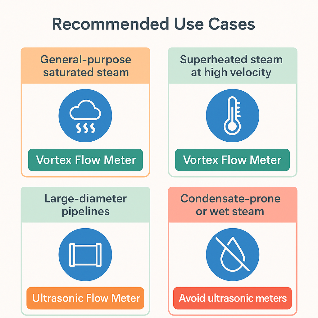 | Condensate-prone or wet steam | ❌ Avoid ultrasonic meters |