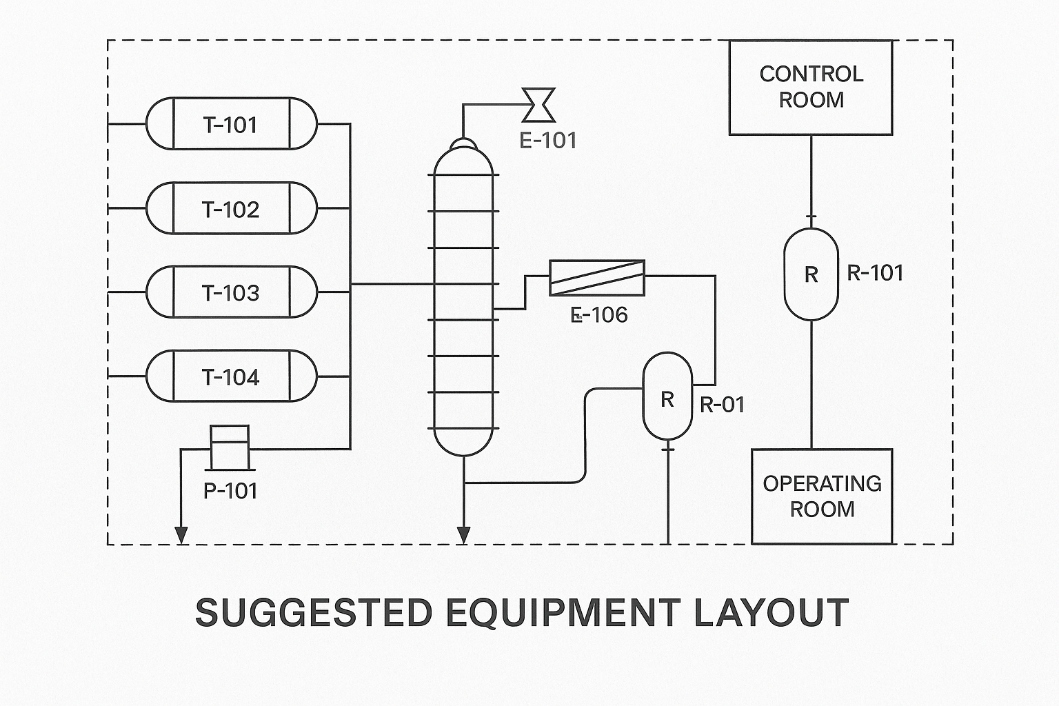 The layout drawing offers a reference for equipment positioning and space allocation. While preliminary in nature, it should cover: