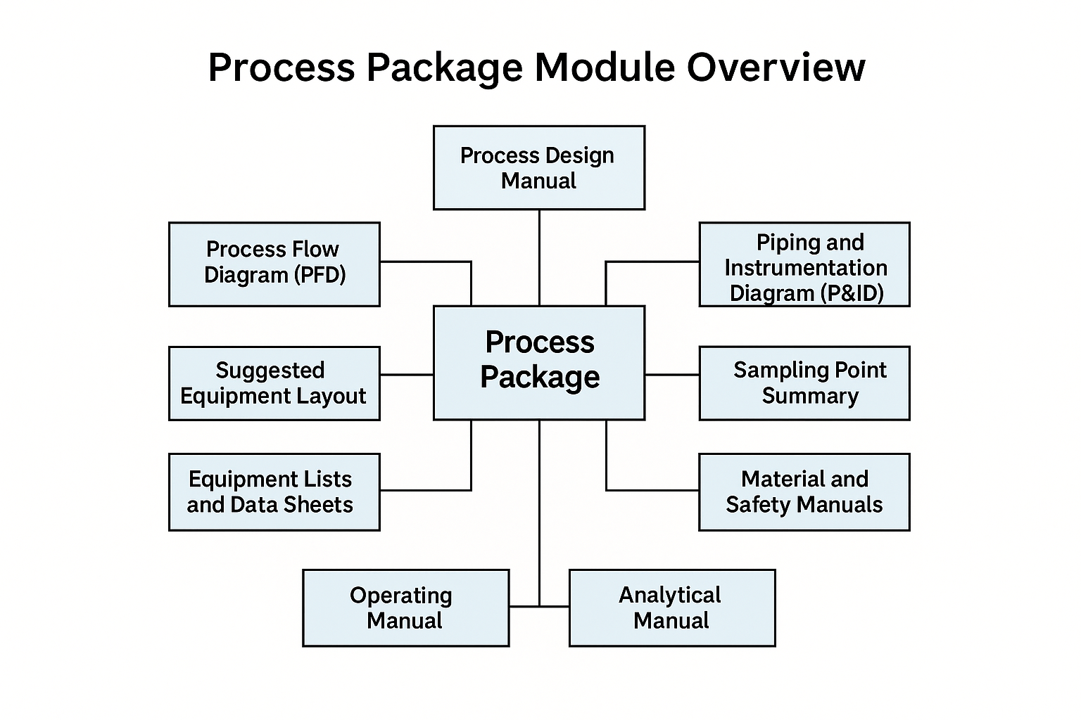 The development of a process package is a complex, multidisciplinary task involving professionals from process engineering, chemical analysis, instrumentation and control, safety and environmental engineering, and other domains. This document outlines the typical components, scope, and depth of a standard chemical process package.