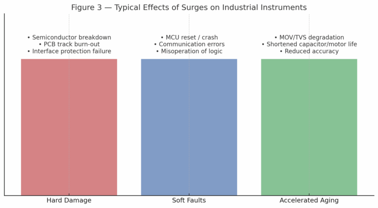 Surge is one of the most common and destructive transient threats in industrial systems. For instrumentation, it may cause: