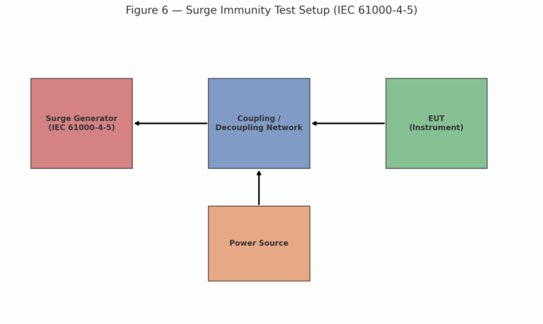 For instrumentation, surge immunity tests must be conducted on both the power port and I/O ports to ensure reliability in real applications.