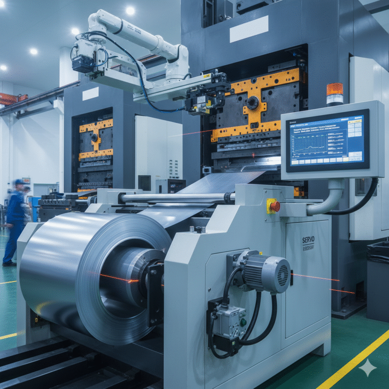In servo feeding systems, this process is automatically calculated via PLC, achieving control accuracy up to 0.01mm.