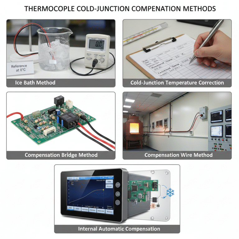 Overview: The most common method involves extending the thermocouple with compensation wire to a location with a more stable temperature (usually a control room). The cold junction is then adjusted manually to compensate for temperature variations.