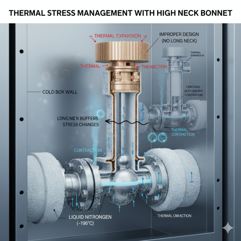Cryogenic valves are widely used in industries dealing with extremely low-temperature media such as liquid oxygen, liquefied natural gas (LNG), and others. These media are not only highly flammable and explosive, but they also vaporize rapidly upon warming, causing a volume expansion of several hundred times, which creates significant safety risks. So, why are high neck valve caps commonly used in these valves? What key issues does this design address? How does it ensure valve sealing and operational stability in extreme cryogenic environments?