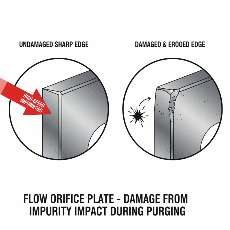Flow orifice plates are precision-made, with the inlet side usually featuring a sharp, right-angle edge. If the orifice plate is left in place during the purging process, high-speed impurities and debris flowing through the pipeline can collide with the sharp edge. This can cause significant damage to the edge, affecting its shape and precision. As a result, the orifice plate may no longer provide accurate readings of the steam flow, compromising its measurement capabilities.